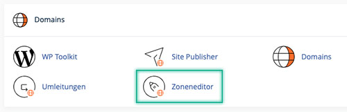 - In the cPanel, scroll down to Domains and then click on Zone Editor
