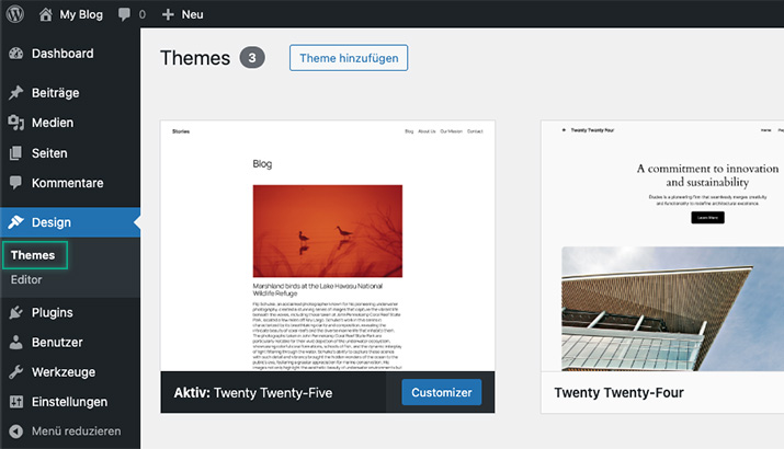 Variante 1 – Löschen eines Themes im WordPress Dashboard