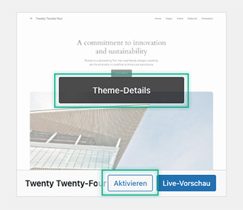 Hinweis: Wenn Sie das aktive Theme löschen möchten, müssen Sie zuerst ein anderes Theme aktivieren. Fahren Sie dazu mit der Maus über das Theme und klicken Sie Aktivieren