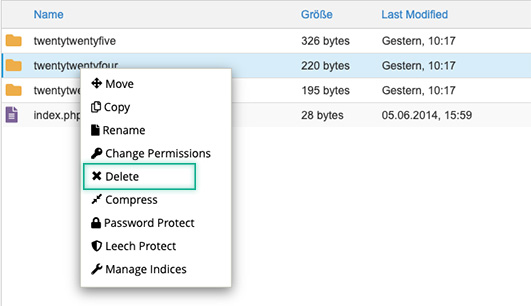 Variante 2 – Löschen eines Themes via Dateimanager